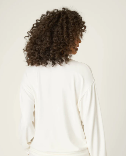 Feel-ine festive in this peachy-soft jersey crew, starring a holiday kitty tied up in a giant red bow. Designed in ivory with an easy, relaxed fit and dropped shoulders, it’s the kind of top you’ll throw on for tree-trimming, fireside lounging, or sneaking out for a peppermint latte.